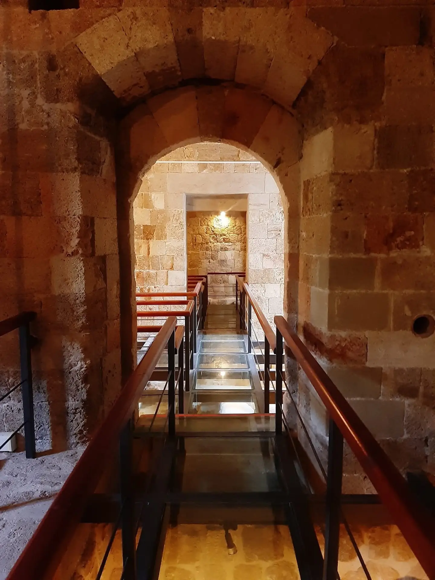 Στους ανεσκαμμένους θόλους του ισογείου μπορεί κανείς να δει κατάλοιπα των οικοδομικών φάσεων του κτιρίου, αλλά και του πολεοδομικού ιστού της πόλης, μεταξύ αυτών και της ρωμαϊκής πομπικής οδού Ρ 31 που ξεκινούσε από το ρωμαϊκό τετράπυλο, στους σημερινούς κήπους της Αρχαιολογικής Υπηρεσίας, συνέχιζε κάτω από τις οικίες Τζεμ, Villaragut και Operti, και κινούνταν στον άξονα της σημερινής Αγ. Φανουρίου.