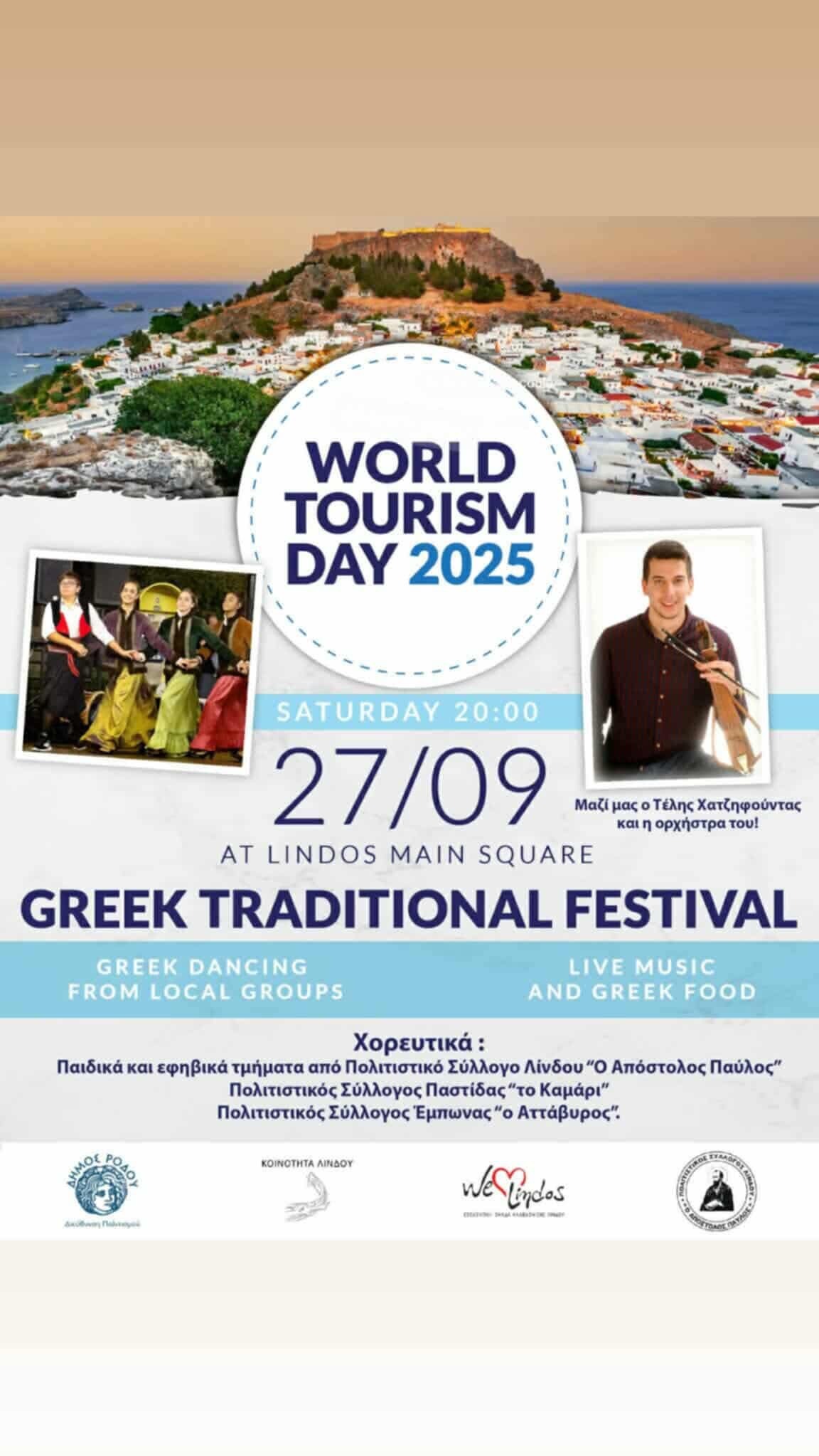 Η Λίνδος σας προσκαλεί στην Κεντρική Πλατεία της για τον εορτασμό της Παγκόσμιας Ημέρας Τουρισμού 2025.