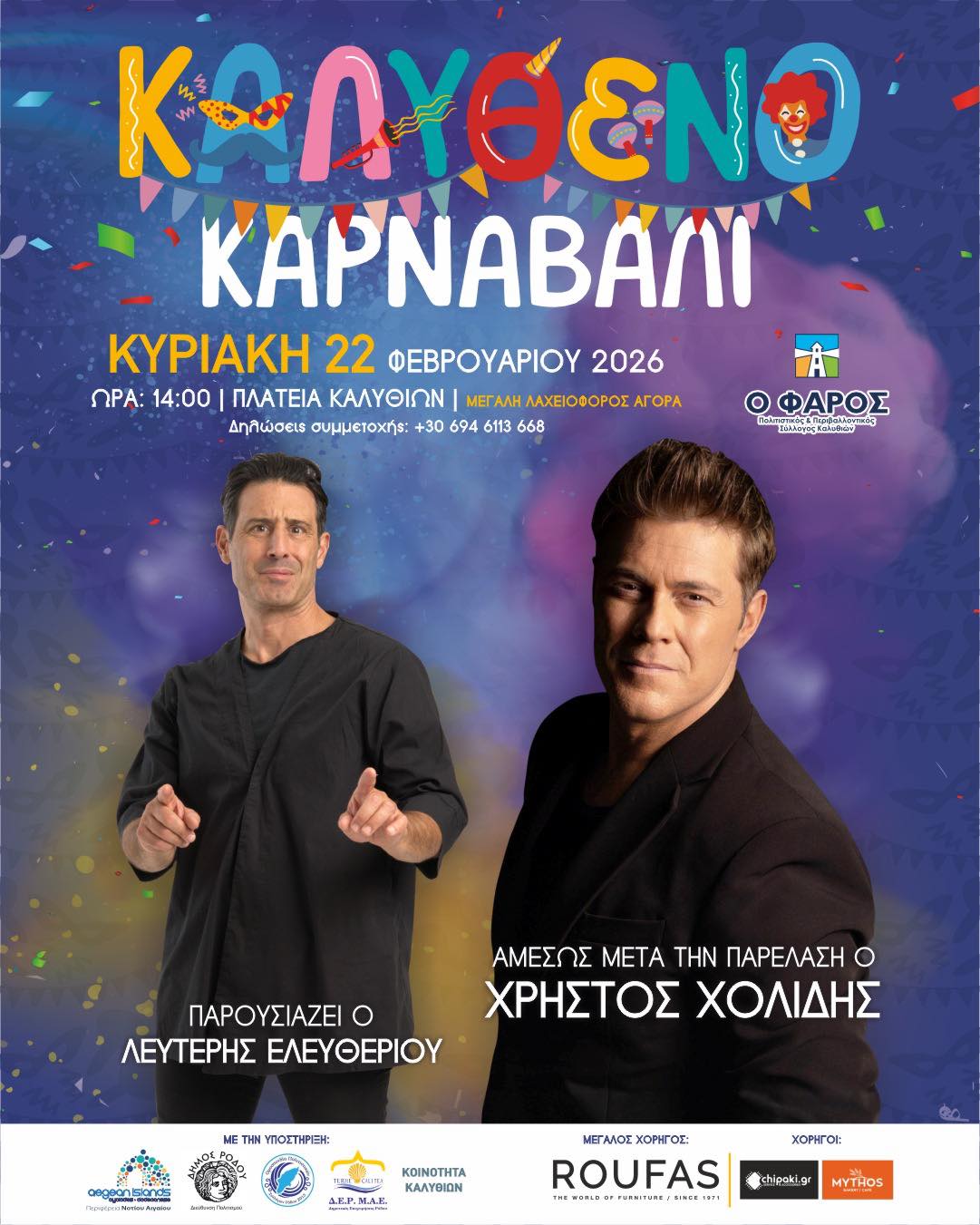 Ετοιμαστείτε για την απόλυτη αποκριάτικη εμπειρία! Ο Πολιτιστικός & Περιβαλλοντικός Σύλλογος Καλυθιών «Ο Φάρος» σας προσκαλεί στο Καλυθενό Καρναβάλι 2026, μια γιορτή γεμάτη κέφι, χρώμα και εκπλήξεις!