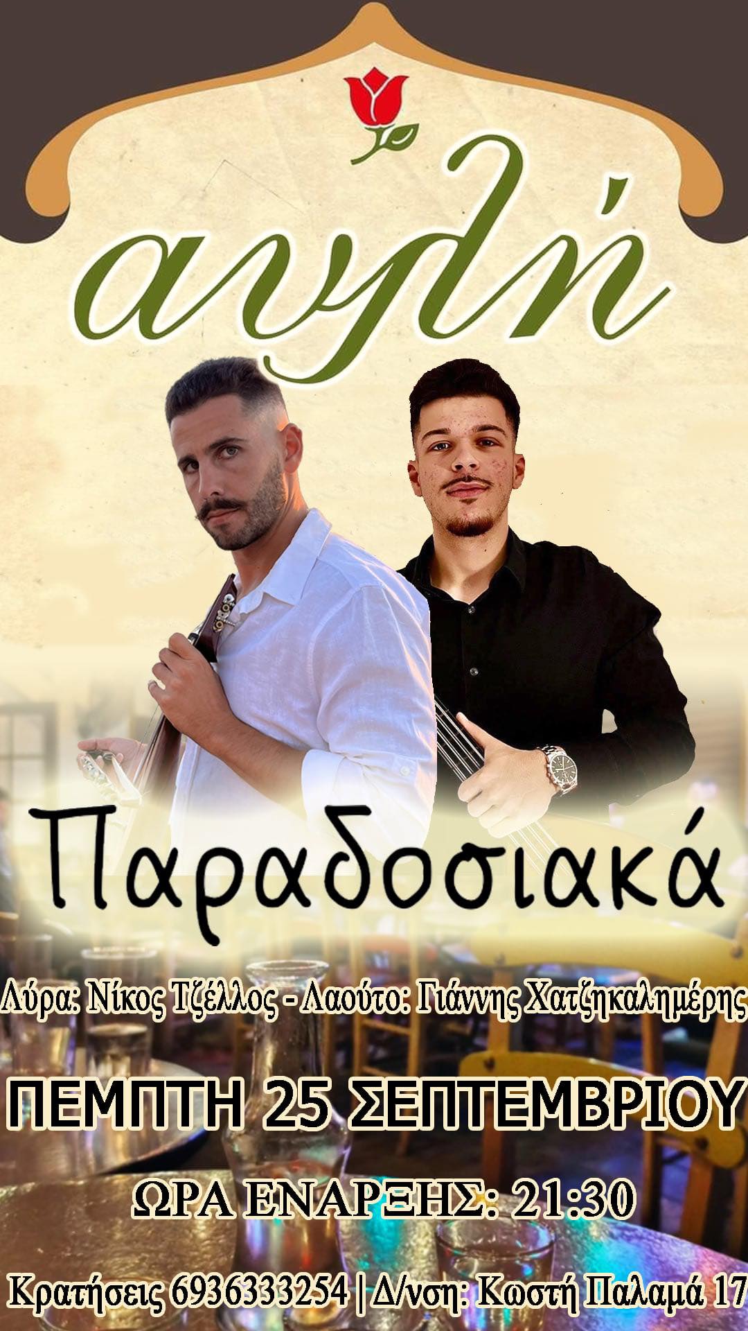 Νίκος Τζέλλος και Γιάννης Χατζηκαλημέρης σε Παραδοσιακή Βραδιά στην «Αυλή»