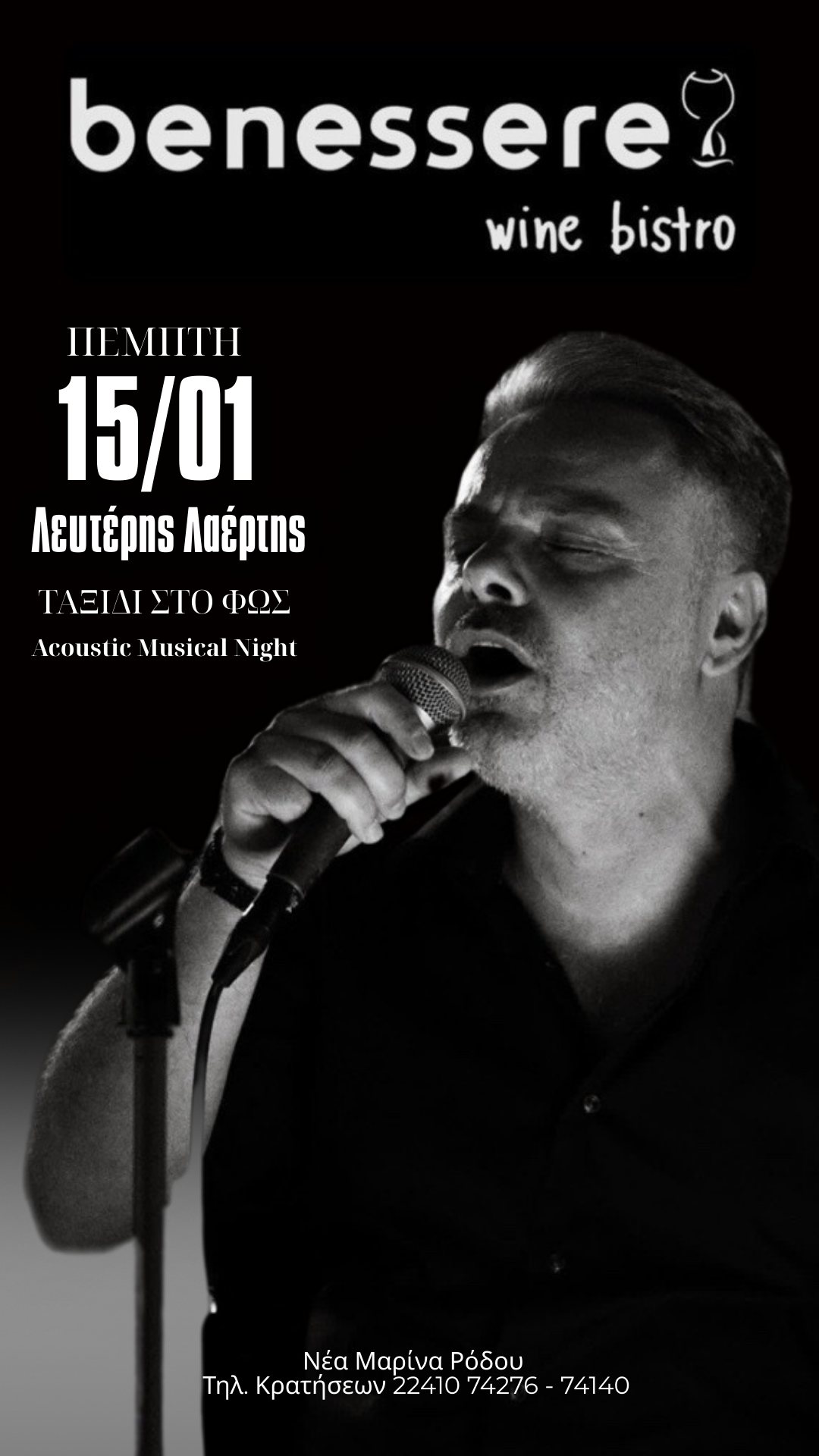 Ο Λευτέρης Λαέρτης για μια μοναδική βραδιά στο Benessere Wine Bistro . Περιορισμένες θέσεις ! Για κρατήσεις καλέστε στο 22410 74276.