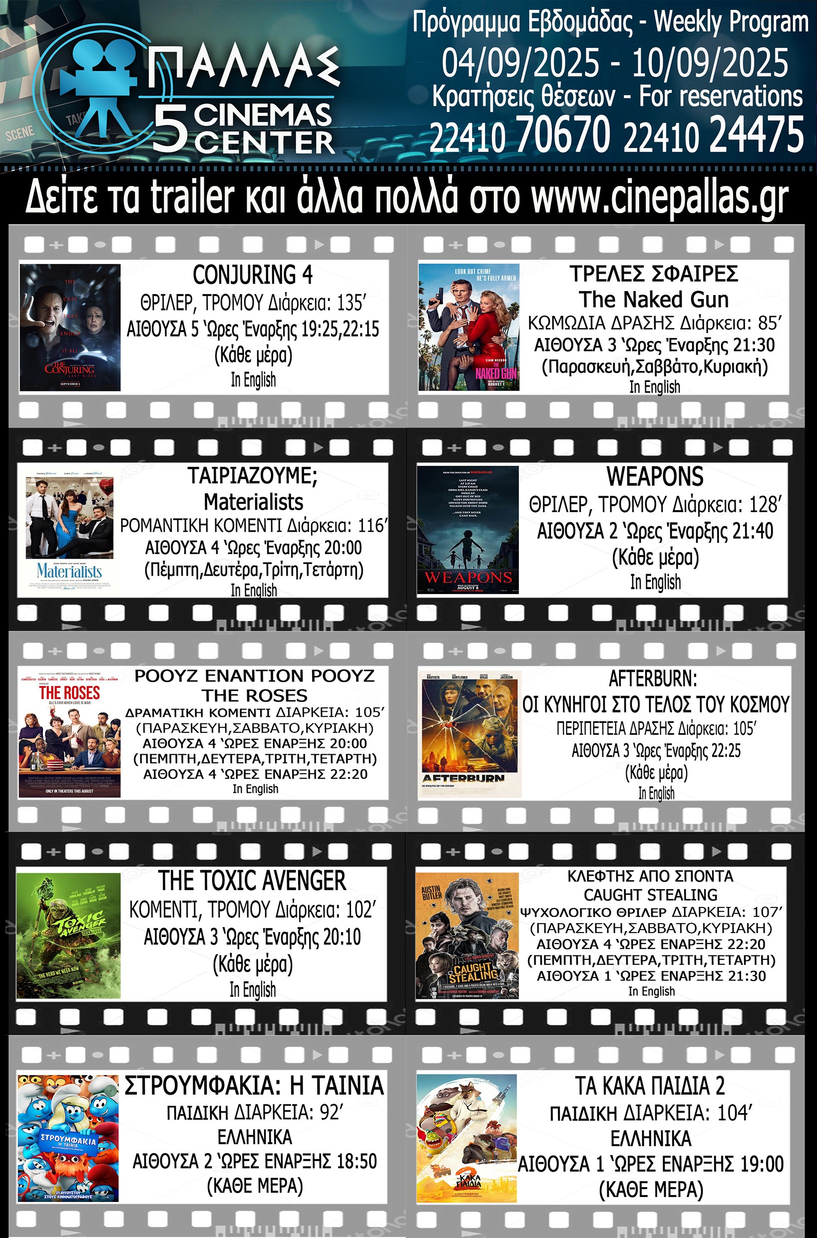 Πρόγραμμα προβολών του Κινηματογράφου Παλλάς για την εβδομάδα 04/09-10/09/2025