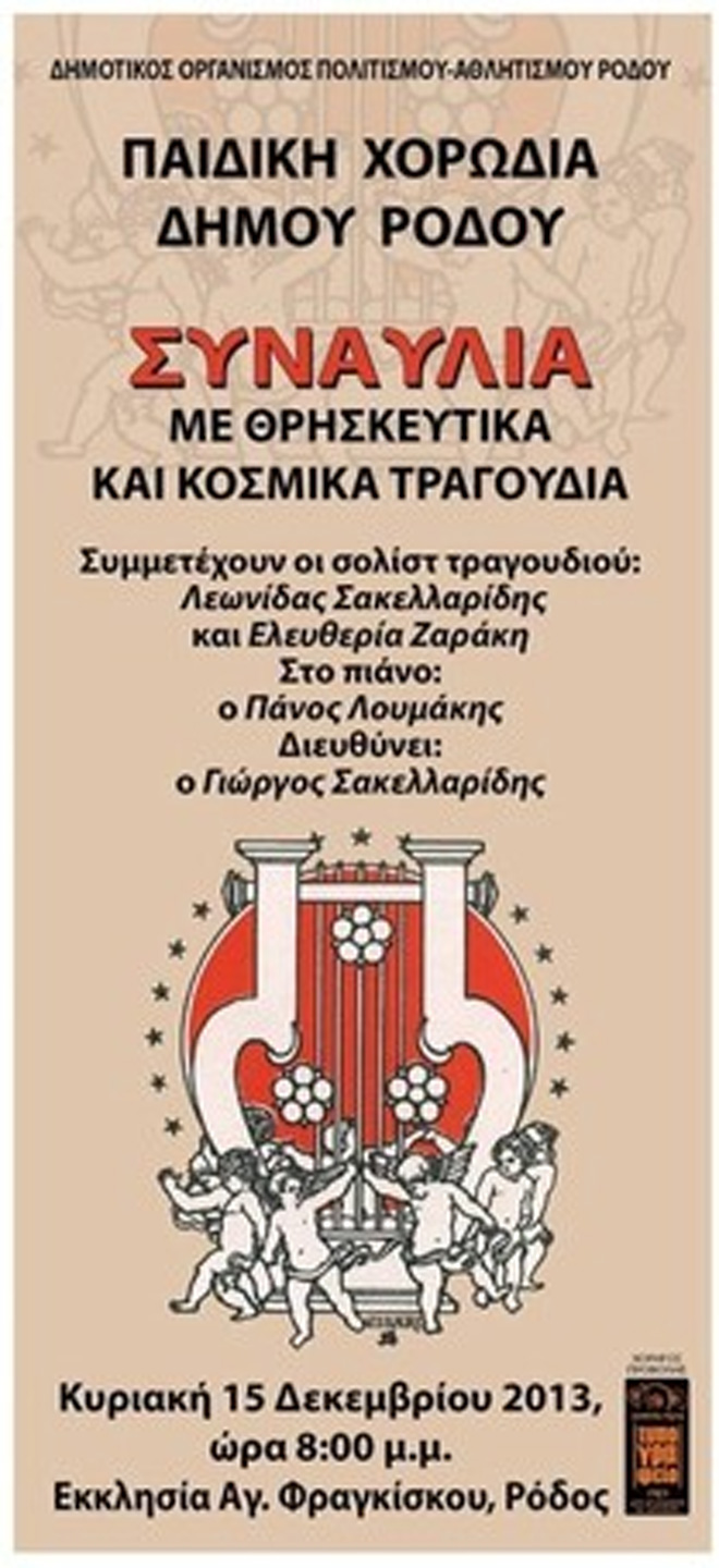 Συναυλία με θρησκευτικά και Κοσμικά Τραγούδια απ’την Παιδική Χορωδία Δήμου Ρόδου