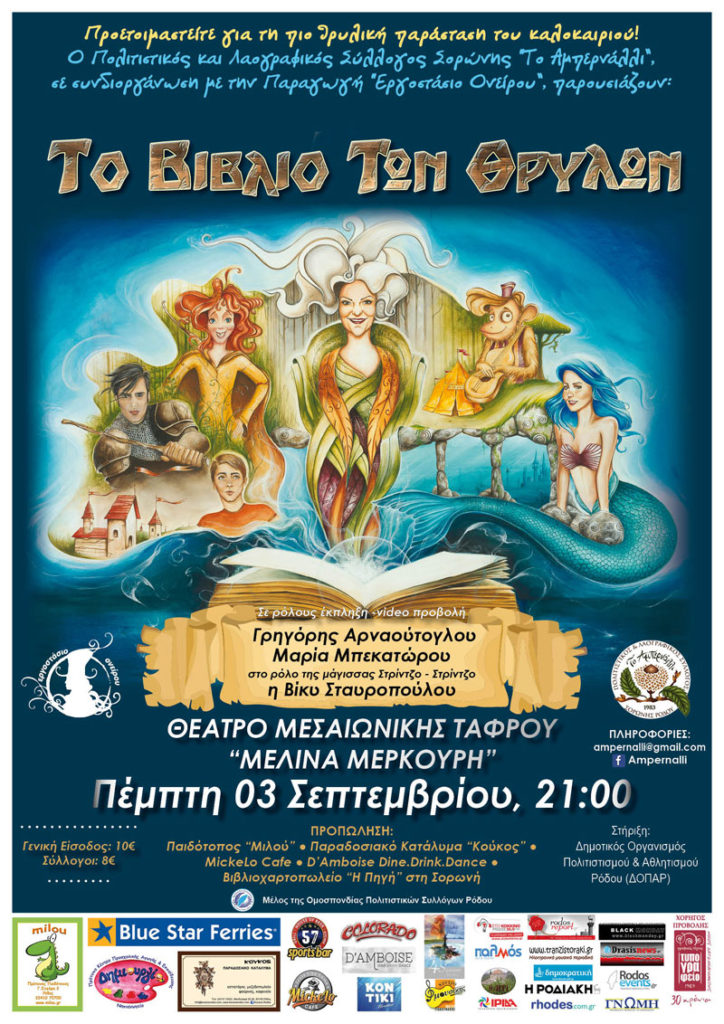 Ο Πολιτιστικός & Λαογραφικός Σύλλογος «ΤΟ ΑΜΠΕΡΝΑΛΛΙ», σε συνδιοργάνωση με την Παραγωγή «ΕΡΓΟΣΤΑΣΙΟ ΟΝΕΙΡΟΥ», παρουσιάζουν την παιδική παράσταση: «ΤΟ ΒΙΒΛΙΟ ΤΩΝ ΘΡΥΛΩΝ». Η παράσταση που σημείωσε μεγάλη επιτυχία στο Θέατρο «Κάτια Δανδουλάκη», τη σχολική σεζόν 2014-2015, έχει ως βασικό μέλημα να καλλιεργήσει τη φαντασία των παιδιών μέσα από οπτικά ερεθίσματα που είναι εμπνευσμένα απ’ το […]
