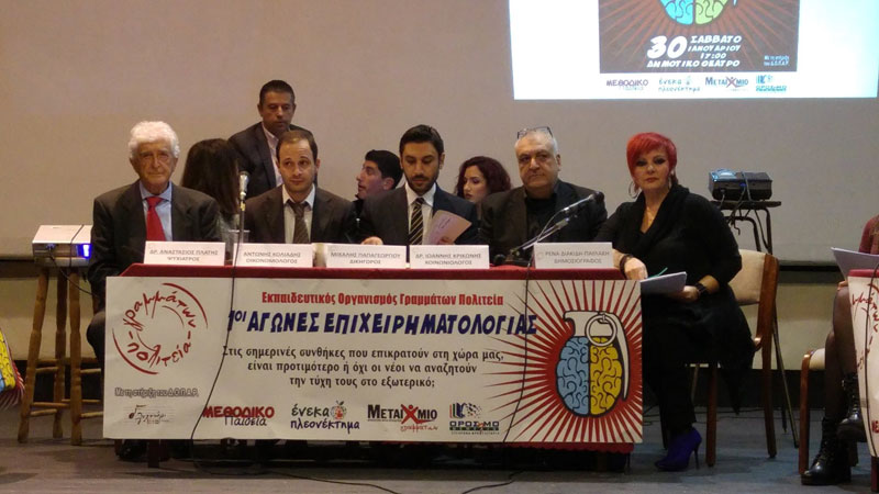 Οι φιλόλογοι καθηγητές των φροντιστηρίων έκαναν κλήρωση μέσα από την οποία αναδείχθηκε η ομάδα των μαθητών που θα στήριζε και η ομάδα που θα αντέκρουε την άποψη: «Είναι προτιμότερο ή όχι οι νέοι να αναζητήσουν την τύχη τους στο εξωτερικό με δεδομένες τις συνθήκες της χώρας μας».