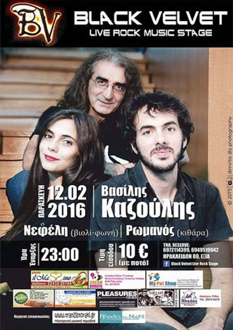 Βασίλης Καζούλης, ένας από τους πιο αγαπημένους τραγουδοποιούς της γενιάς του, από την αρχή της καλλιτεχνικής του πορείας έχει υπογράψει κάποια από τα πιο χαρακτηριστικά τραγούδια που μας συντροϕεύουν και σιγοτραγουδάμε μέχρι σήμερα (Φανή, Αν ήσουν άγγελος, Κάτι να γυαλίζει, Το τελευταίο πλοίο για την Αμοργό, Αεροπλάνα, Βορινό Λιμάνι, Κοπέλες για λίγο, Τα ϕιλιά του Αυγούστου κ.α.).