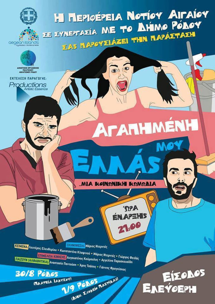 Ο Δημοτικός Οργανισμός Πολιτισμού –Αθλητισμού Ρόδου σε συνδιοργάνωση με την Περιφέρεια Νοτίου Αιγαίου σας παρουσιάζουν την παράσταση ΑΓΑΠΗΜΕΝΗ ΜΟΥ ΕΛΛΑΣ ΜΙΑ ΚΟΙΝΩΝΙΚΗ ΚΩΜΩΔΙΑ 30 Αυγούστου, στις 21:00 στην Κεντρική Πλατεία Ιαλυσού και 1/9 , στις 21:00 στο Δημοτικό Σχολείο Παστίδας Είσοδος Ελεύθερη Ελλάδα 2016. Κάποιοι την χαρακτηρίζουν ως την πιο κρίσιμη περίοδο μετά την μεταπολίτευση. […]