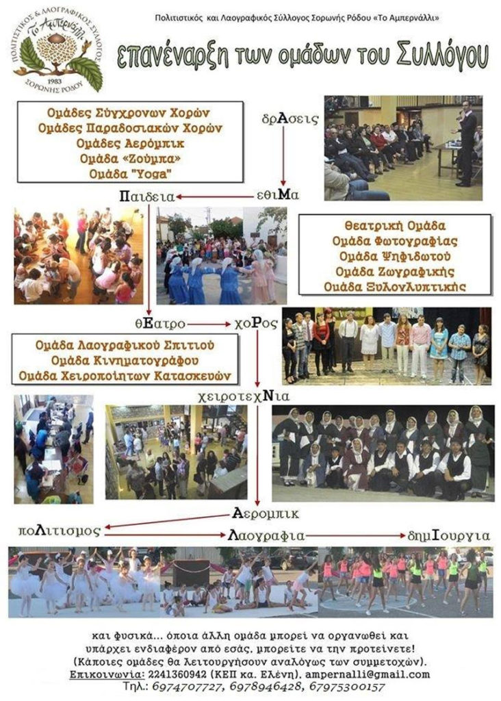 Ο Πολιτιστικός και Λαογραφικός Σύλλογος Σορωνής Ρόδου «Το Αμπερνάλλι» ξεκινά ξανά τις βασικές δραστηριότητες του. Παρά τη δύσκολη περίοδο που διανύουμε, δεν μπορούμε να στερήσουμε από τα παιδιά μας την παιδεία, την κοινωνικοποίηση , την ανάπτυξη του πνεύματος και των δεξιοτήτων, την επαφή με τις παραδόσεις μας, την άσκηση μυαλού και σώματος. Φυσικά όλα αυτά […]