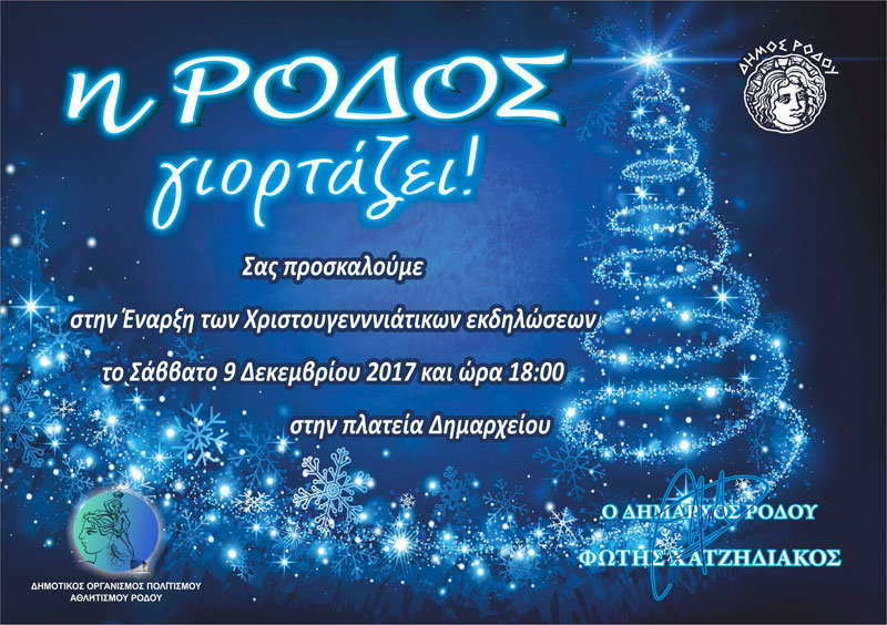 Το Σάββατο 9 Δεκεμβρίου, και ώρα 18:00, η Ρόδος φοράει τα γιορτινά της και ταξιδεύει μικρούς και μεγάλους σ’ ένα Χριστουγεννιάτικο σκηνικό χαρίζοντας χαμόγελα, μουσική, χορό και πολλές εκπλήξεις.