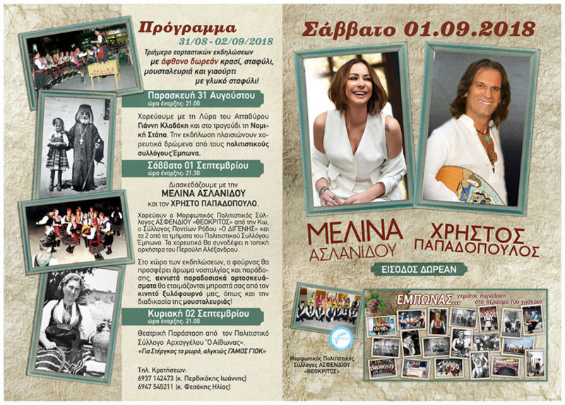 Συνδιοργάνωση: Περιφέρεια Νοτίου Αιγαίου ,Δ.Ο.Π.Α.Ρ. και Δημοτική Κοινότητα Έμπωνα.