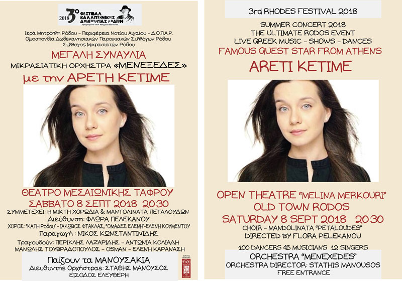 Μεγάλη συναυλία με τη Μικρασιατική ορχήστρα «Μενεξέδες» και την Αρετή Κετιμέ.