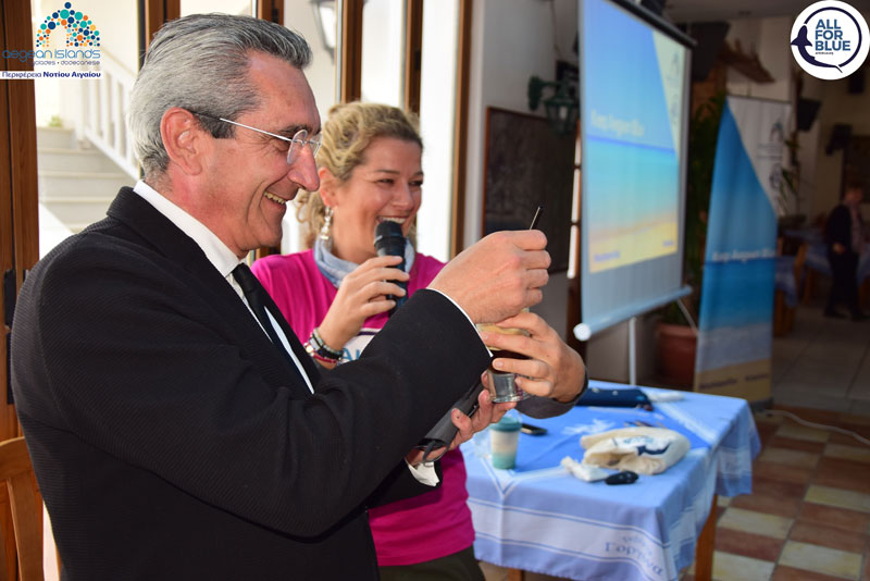 Πριν τον υποβρύχιο και παράκτιο καθαρισμό, σε μια κατάμεστη αίθουσα του εστιατορίου «Γοργόνα», παρουσία και του Περιφερειάρχη Νοτίου Αιγαίου, Γιώργου Χατζημάρκου, πραγματοποιήθηκε σεμινάριο το οποίο παρακολούθησαν οι μαθητές, με αντικείμενο την σημασία της προστασία του θαλάσσιου περιβάλλοντος.