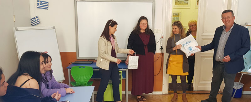 Ειδικότερα, στο πλαίσιο σύσφιξης των σχέσεων με την ελληνική παροικία και ομογένεια της Ουγγαρίας, ομάδα μαθητών με συνοδούς καθηγητές τον διευθυντή του σχολείου κ. Ανδρέα Μαρίνο και την κ. Ιουλία Γούλα, επισκεφτήκαν το Συμπληρωματικό Ελληνικό Σχολείο της Βουδαπέστης. Οι μαθητές αντάλλαξαν απόψεις μεταξύ τους καθώς και ενημερώθηκαν για την αγαστή συνεργασία των δύο χωρών στο πέρασμα των τελευταίων χιλίων ετών. Μέσα από μια σύντομη παρουσίαση από την διευθύντρια του σχολείου, των σημαντικότερων σταθμών των σχέσεων αυτών, έγινε ιδιαίτερη μνεία στις σχέσεις που αναπτύχθηκαν ιδιαίτερα μετά τον Β’ Παγκόσμιο Πόλεμο. Στη συνέχεια, έγινε ανταλλαγή αναμνηστικών δώρων και τοπικών παραδοσιακών προϊόντων μας από τον διευθυντή κ. Ανδρέα Μαρίνο, καθώς και τουριστικών εντύπων της Ρόδου.