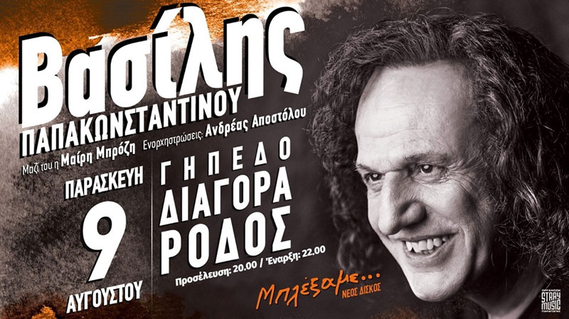 Ο Βασίλης Παπακωνσταντίνου, ο αιώνιος έφηβος, έρχεται για μια μοναδική συναυλία την Παρασκευή 9 Αυγούστου στις 22.00 μ.μ. στο Στάδιο Διαγόρα, σε μια διοργάνωση του Πολιτιστικού Συλλόγου Γυναικών Ρόδου, στο πλαίσιο του Ακταίον Summer Festival. Μια συναυλία που αναμένεται να είναι θρυλική, με αγαπημένα μας διαχρονικά τραγούδια-σταθμούς και κομμάτια και από το νέο του δίσκο […]