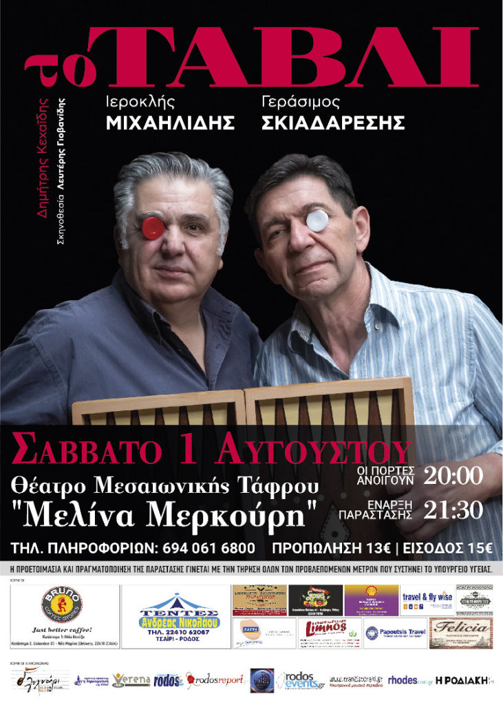 Ο Ιεροκλής Μιχαηλίδης και ο Γεράσιμος Σκιαδαρέσης σε μια παρτίδα δεξιοτεχνίας σε σκηνοθεσία Λευτέρη Γιοβανίδη παρουσιάζουν ΤΟ ΤΑΒΛΙ του Δημήτρη Κεχαΐδη. Μετά από μια πετυχημένη περιοδεία το καλοκαίρι 2019 σε ολόκληρη την Ελλάδα, η παράσταση ξεχώρισε και αγκαλιάστηκε θερμά από το κοινό, συνέχισε παραστάσεις το χειμώνα στην Αθήνα στο νέο Μικρό Άνεσις και ετοιμάζεται το […]