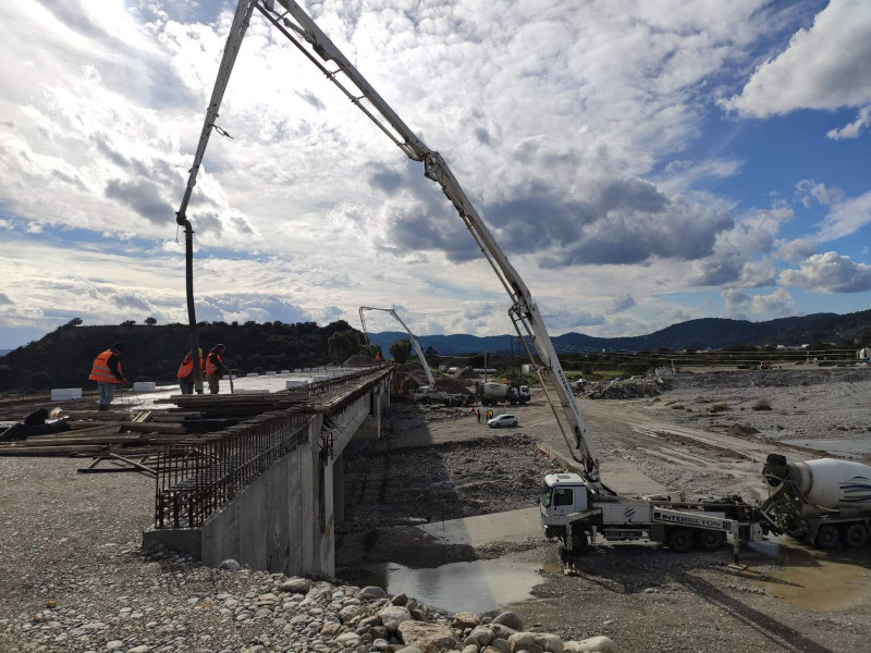 Μετά την ολοκλήρωση της τοποθέτησης δοκών υποστήριξης, χθες έγινε η σκυροδέτηση όλης της πλάκας καταστρώματος, ούτως ώστε το έργο να περάσει στο τελικό στάδιο κατασκευής του, με την τοποθέτηση των στηθαίων ασφαλείας και την ασφαλτόστρωση.