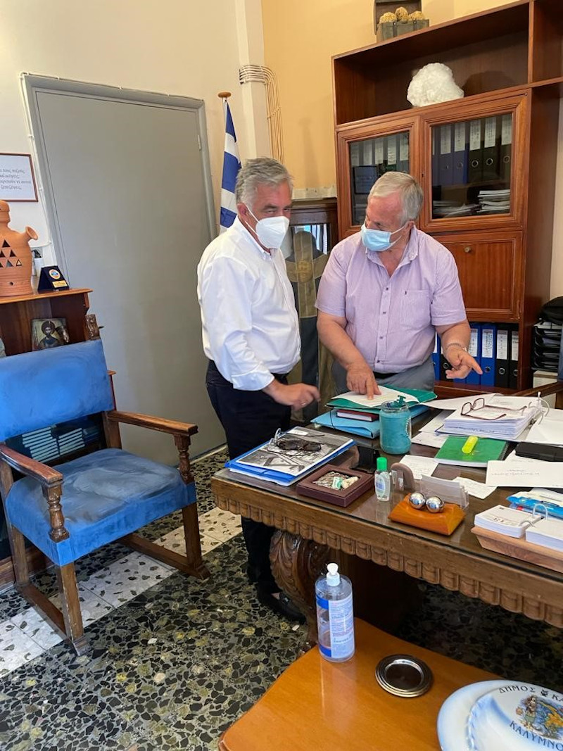 Στην Κάλυμνο ο βουλευτής είχε εγκάρδια συνομιλία με τον Έπαρχο Καλύμνου, Λέρου και Αστυπάλαιας κ. Ε. Μουσελή με τον οποίο συζήτησε αναπτυξιακά ζητήματα των νησιών του επαρχείου του, ενώ με τον Δήμαρχο κ. Δημήτρη Διακομιχάλη έκανε επισκόπηση των προσπαθειών ολοκλήρωσης του σχεδίου υλοποίησης σχολής Μηχανικών στην ΑΕΝ Καλύμνου, μίλησαν για το σχέδιο περαιτέρω ανάπτυξης της Καλύμνου ως τόπου ανάπτυξης δραστηριοτήτων περιπέτειας και τις επιμέρους δράσεις σχετικά με τη λειτουργία του καταδυτικού κέντρου της Καλύμνου και της ανάπτυξης θαλασσίου πάρκου. Τέλος ο βουλευτής ύστερα από αίτημα των επικεφαλής της τοπικής αυτοδιοίκησης στην Κάλυμνο και του Διευθυντή του ΕΠΑΛ Καλύμνου κ. Γιάννη Ιακώβου, είχε επικοινωνία με τον Γ. Γ του Υπουργείου Παιδείας κ. Βουτσίνο, προκειμένου να προωθεί για το σχολικό έτος 2022-2023, η δημιουργία νυχτερινού ΕΠΑΛ στην Κάλυμνο.