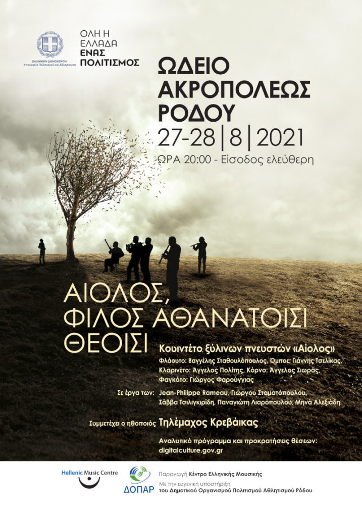 Μια παράσταση αφιερωμένη στη μουσική των ανέμων: Αἴολος, φίλος ἀθανάτοισι θεοῖσι (Αίολος, των αθανάτων φίλος, Οδύσσεια, ραψ. κ, μτφ. Ζ. Σιδέρη) Πέντε μουσικά έργα εμπνευσμένα από κείμενα της αρχαίας ελληνικής γραμματείας που σχετίζονται με τον Αίολο και τους ανέμους που κρατούσε στον ασκό του. Κουιντέτο πνευστών «Αίολος» Φλάουτο: Βαγγέλης Σταθουλόπουλος, Όμποε: Γιάννης Τσελίκας Κλαρινέτο: Άγγελος […]