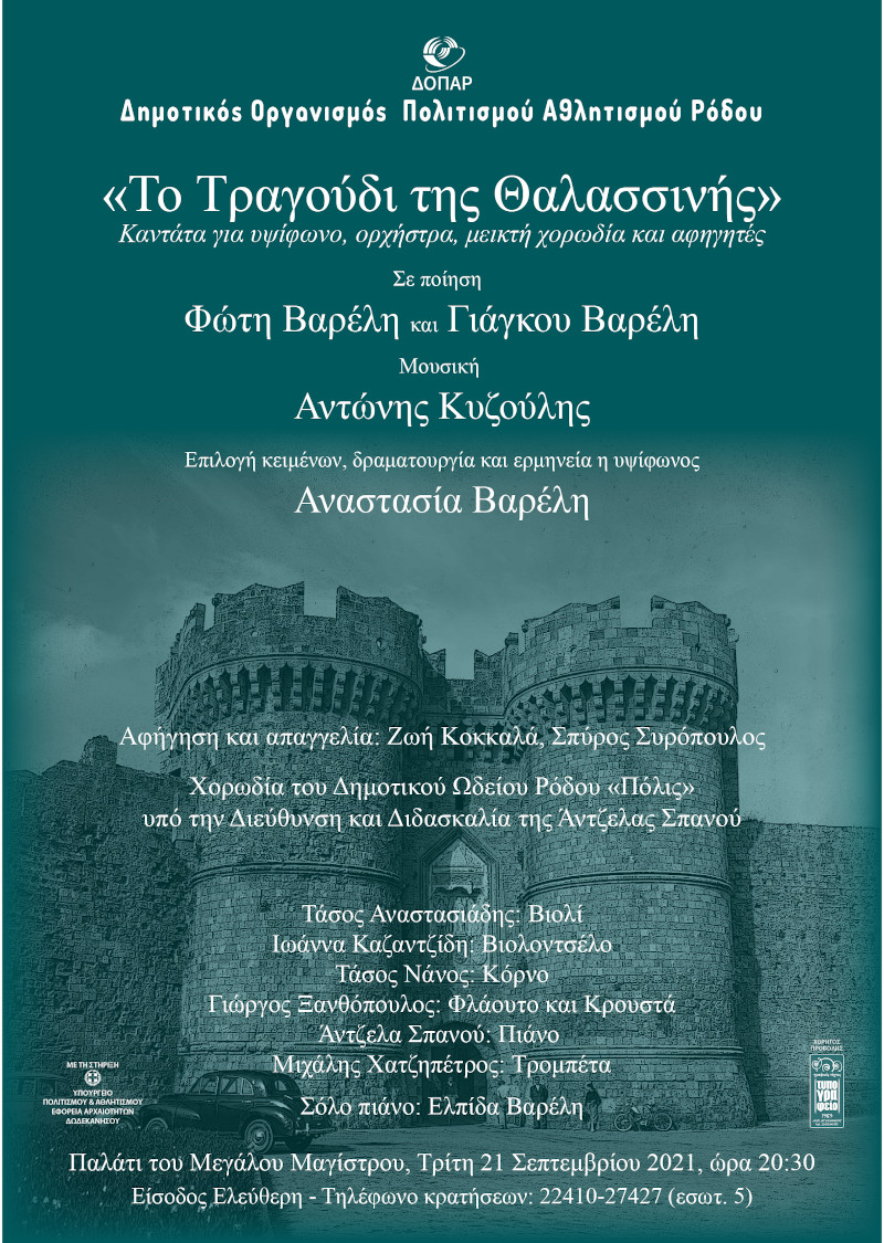 Στο μουσικό έργο συμπράττει η Χορωδία του Δημοτικού Ωδείου Ρόδου «Πόλις», υπό τη διεύθυνση και διδασκαλία της Άντζελας Σπανού.