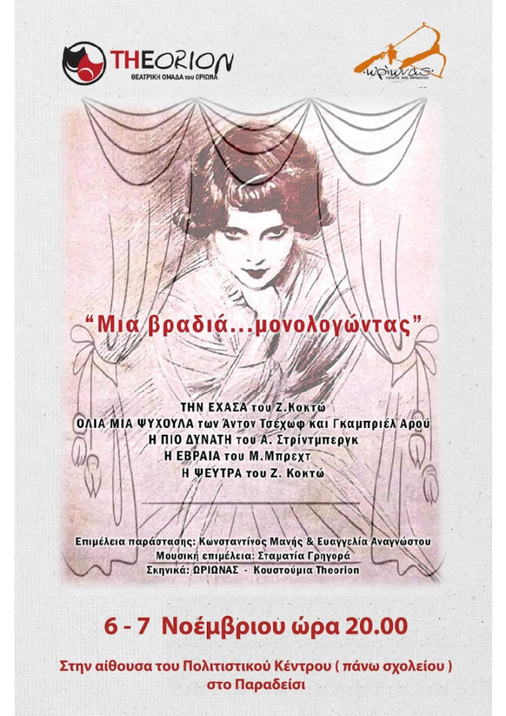 Θεατρική παράσταση: “Μια βραδιά…μονολογώντας”