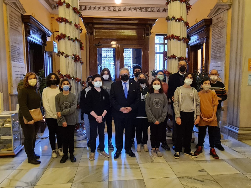 Κατά τη διάρκεια της επίσκεψής του στην Πατριαρχική Μεγάλη του Γένους Σχολή, ο κ. Χρυσουλάκης συναντήθηκε με τους μαθητές και με τον Λυκειάρχη, κ. Δημήτρη Ζώτο. Συζήτησε μαζί τους για την ενεργό συμμετοχή του σχολείου στις δράσεις της Γενικής Γραμματείας Απόδημου Ελληνισμού και Δημόσιας Διπλωματίας και ειδικότερα τα σχέδια που αφορούν στη νεολαία, όπως η Οικονομική Ολυμπιάδα και το Πανομογενειακό Συνέδριο Νεολαίας, που θα πραγματοποιηθεί το καλοκαίρι.