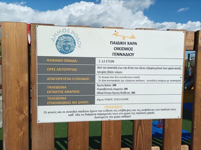 Ακολουθούν σύντομα παιδικές χαρές και σε άλλα χωριά της Δ.Ε. Λινδίων και Ν. Ρόδου, και συγκεκριμένα στα Λάερμα, στην Κατταβιά και σε άλλα, ώστε σε λίγο καιρό η μεγάλη πλειοψηφία των χωριών μας να έχει από μια ολοκαίνουργια παιδική χαρά, σύμφωνα και με την επιθυμία του Δημάρχου μας.