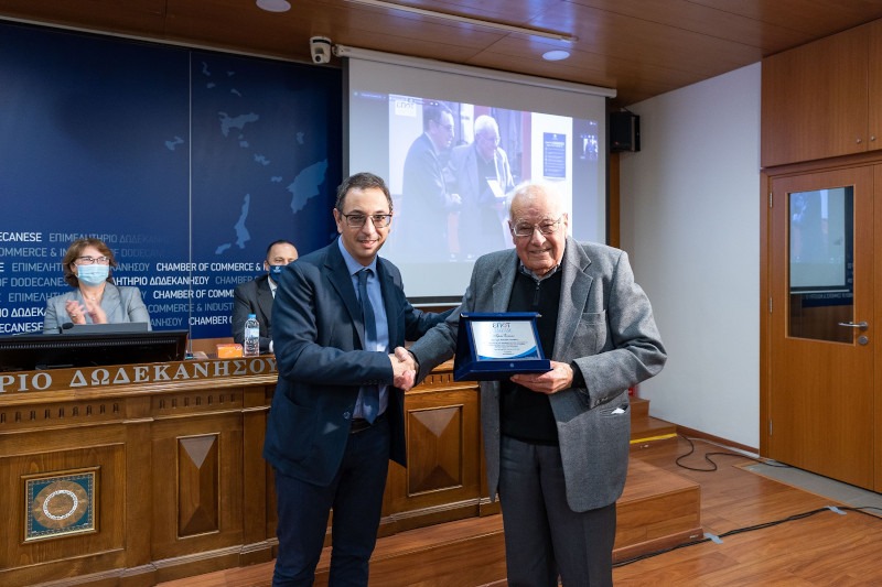 Στη βράβευση του Δρα Μιλτιάδη Λογοθέτη από τον πρόεδρο του Επιμελητηρίου κ. Γιάννη Πάππου και τον αντιπρόεδρο της ΕΠΟΤ κ. Χαράλαμπο Λουκαρά «για το έργο του και την προσφορά του στην οικονομική και ιστορική επιστήμη, στον πολιτισμό και την παιδεία, ιδιαίτερα όμως στον Τουρισμό», συγκίνηση και σεβασμός διαπέρασε όλους τους παρευρισκόμενους. Ο πρόεδρος του Επιμελητηρίου κ. Γιάννης Πάππου, μεταξύ άλλων, χαρακτήρισε τον κ. Λογοθέτη πρωτεργάτη του επιστημονικού έργου στον τουρισμό. Υπηρέτησε επί 30 έτη ως διευθυντής του Επιμελητηρίου, ως σύμβουλος στην Ένωση Ξενοδόχων Ρόδου, δίδαξε στην ΑΣΤΕΡ, διετέλεσε πρόεδρος στο οικονομικό επιμελητήριο και στο Ίδρυμα Υποτροφιών, μέλος της Στέγης Γραμμάτων και Τεχνών. Τίμησε τη Δωδεκάνησο με το ήθος, τη γνώση, την εργασία του, τα σπάνια χαρίσματα που διαθέτει, την οξυδέρκεια και αποτελεσματικότητά του. Το συγγραφικό του έργο αποτελεί αντικείμενο μελέτης και μάθησης. Η προσφορά του σε εθνικό επίπεδο στον τουρισμό, τεράστια. Εκφράζοντας την ευγνωμοσύνη και εκτίμηση στο πρόσωπό του, ο κ. Πάππου πρόβαλε τη δέσμευση να προστατεύσουμε το έργο του και να το εμπλουτίσουμε με τη βοήθειά του. Την ευγνωμοσύνη, εκτίμηση και θαυμασμό περιείχαν και οι τοποθετήσεις των κ. Γιάννη Παπαδημήτρη Διευθυντού Επιμελητηρίου και Γεν.Γραμματέα ΕΠΟΤ, κ. Γιάννη Φώτη, ιδρυτικού μέλους ΕΠΟΤ και κ. Χαράλαμπου Λουκαρά αντιπροέδρου ΕΠΟΤ. Παρουσίασαν γλαφυρά την προσωπικότητά του μέσα από τη συνεργασία τους επιβεβαιώνοντας ότι στον κλάδο του τουρισμού συγκεντρωμένα και αξιόπιστα στατιστικά στοιχεία για τη Δωδεκάνησο από το ξεκίνημα του τουριστικού θαύματος καθώς και ιστορικά στοιχεία βρίσκει κανείς μόνο στα βιβλία του κου Λογοθέτη. Έδωσαν δε έμφαση, σε μια άλλη άγνωστη πτυχή, αυτή της γενναιόδωρης φροντίδας και υποστήριξης των νέων στα πρώτα τους βήματα και στο ερευνητικό τους έργο (μεταπτυχιακό, διδακτορικό) που καθόρισε την μετέπειτα εξέλιξή τους. Ακολούθησαν οι βραβεύσεις από τους δύο φορείς προς τον Δρα Μιλτιάδη Λογοθέτη.
