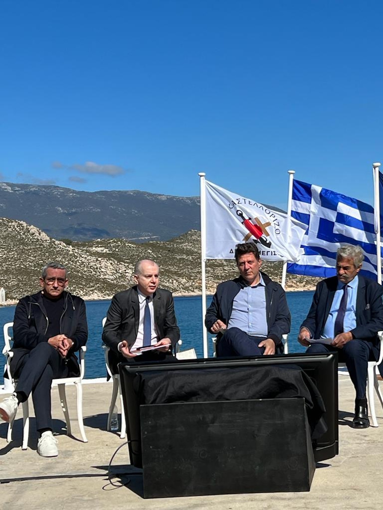 «Πρώτα απ’ όλα, εκ μέρους όλης της Τοπικής Αυτοδιοίκησης του Νότιου Αιγαίου, θέλω να συγχαρώ τον Υπουργό μας, τον Μιλτιάδη Βαρβιτσιώτη για την πρωτοβουλία και την ευκαιρία αυτής της συνάντησης σήμερα, εδώ στο ακριτικό Καστελόριζο.
