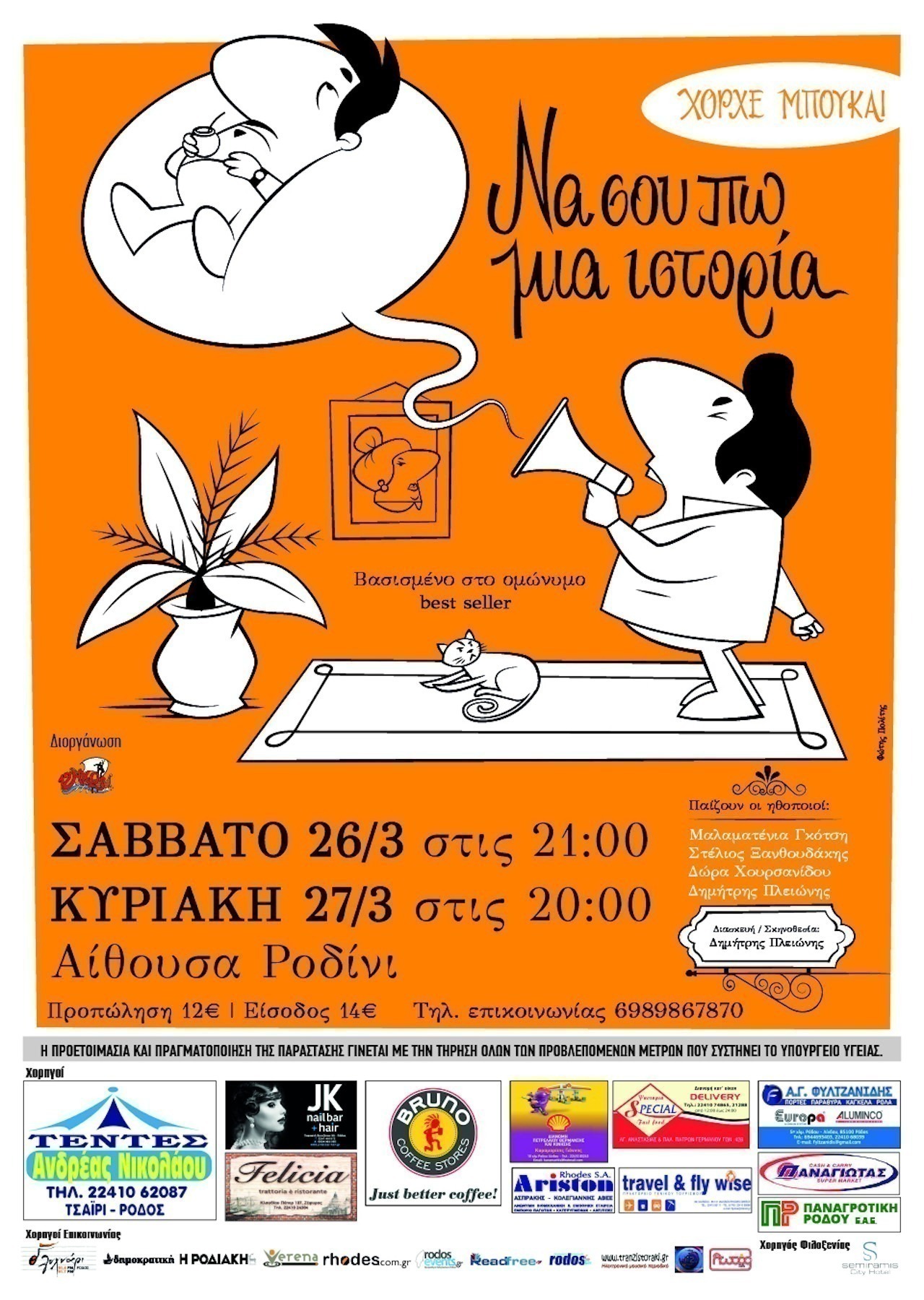 Η παράσταση «Να σου πω μια ιστορία» σε θεατρική διασκευή και σκηνοθεσία του Δημήτρη Πλειώνη, μετά την αμείωτη επιτυχία και την ενθουσιώδη υποδοχή της από το κοινό σημειώνοντας διαδοχικά sold-out στην Αθήνα έρχεται για 2 μοναδικές παραστάσεις στο νησί της Ρόδου!!