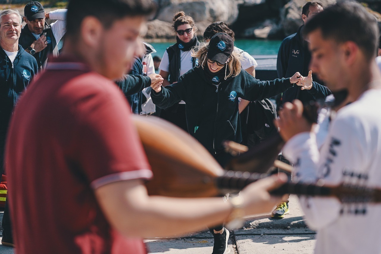 Φτάνοντας την Παρασκευή 6 Μαΐου στην Κάσο, μετά από 6 χρόνια, η υποδοχή μας εντυπωσίασε! Οι κάτοικοι είχαν ετοιμάσει μαντινάδα για την +πλευση και αφού χορέψαμε, ξεφορτώσαμε τις βάρκες υπό το άκουσμα παραδοσιακών βιολιών.