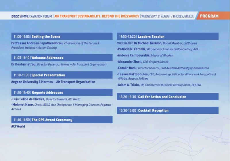 Οι Αερομεταφορές αποτελούν ένα από τους σημαντικότερους μοχλούς ανάπτυξης της Δωδεκανησιακής οικονομίας, μια και πάνω από το 80% των τουριστών στα νησιά μας φτάνει αεροπορικώς. Το συνέδριο γίνεται στο πλαίσιο του καθιερωμένου Summer Aviation Forum, το οποίο φιλοδοξούν Περιφέρεια και Δήμος να διοργανώνεται μόνιμα στη Ρόδο, και μιας σειράς σημαντικών δράσεων και διεθνών επαφών, με στόχο την βιωσιμότητα των Αερομεταφορών.