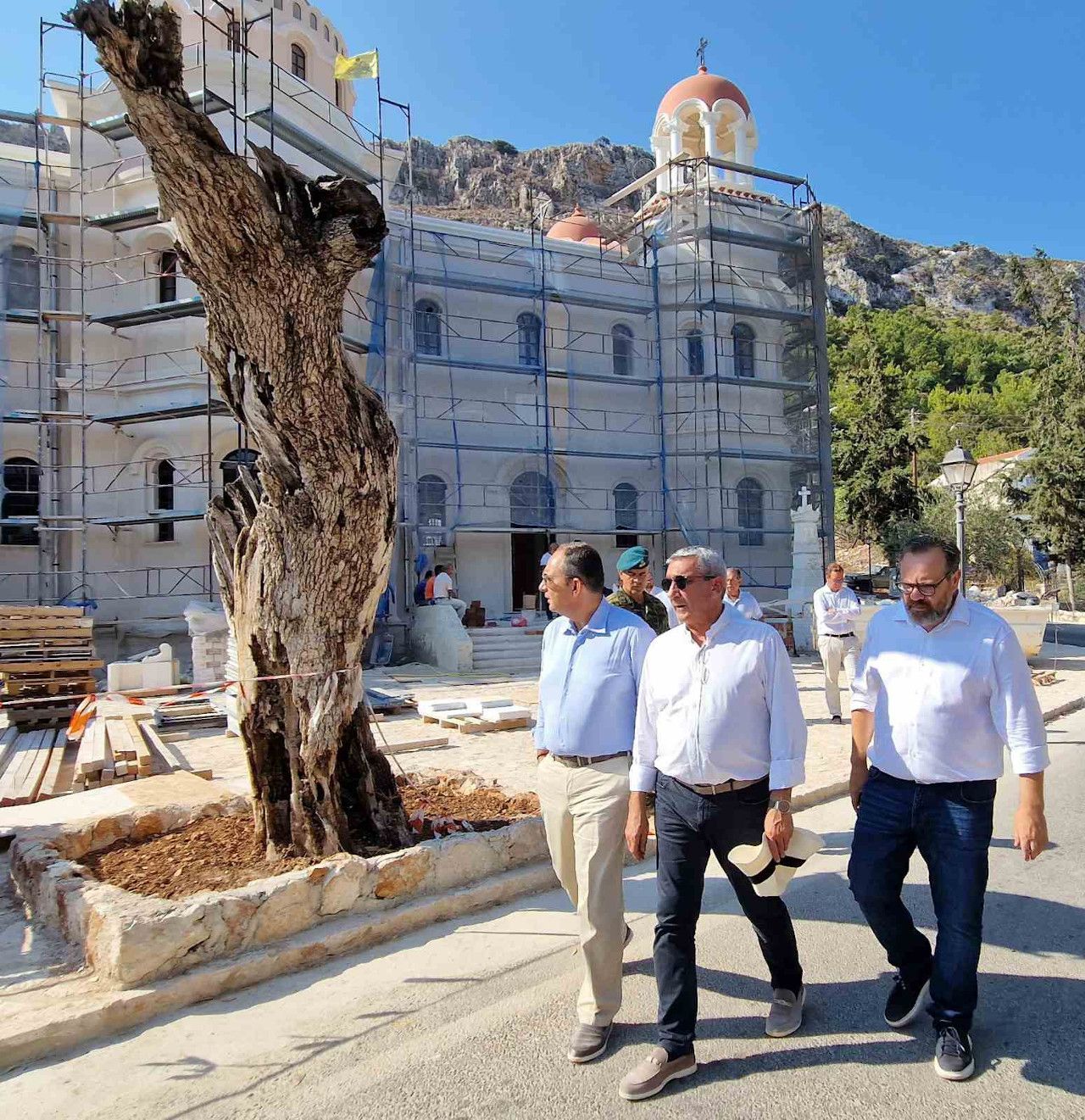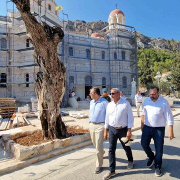 Η επίσκεψη στο Καστελόριζο ολοκληρώθηκε με επίσκεψη στον Ιερό Ναό του Αγίου Γεωργίου του Σαντραπέ, που αποκαταστάθηκε πλήρως με δωρεά του ιδρύματος Αθανασίου & Μαρίνας Μαρτίνου, με το έργο να βρίσκεται στο τελικό στάδιο ολοκλήρωσής του.