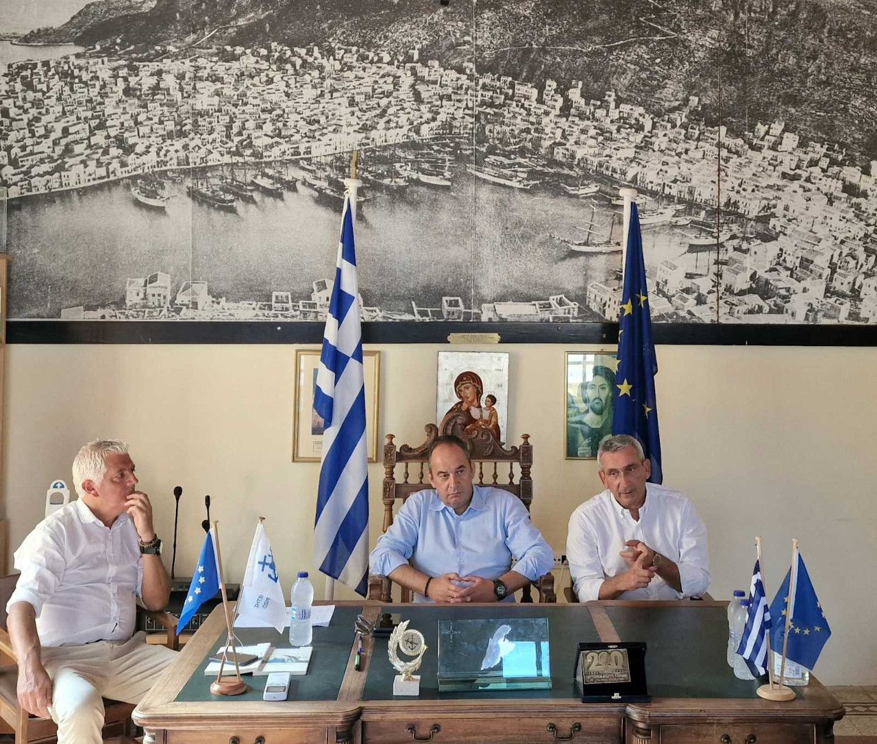 Των εγκαινίων ακολούθησε σύσκεψη στο Δημαρχείο όπου συζητήθηκαν τα θέματα των υποδομών του νησιού που περνούν μέσα από τα χρηματοδοτικά εργαλεία της Γενικής Γραμματείας Νησιωτικής Πολιτικής.