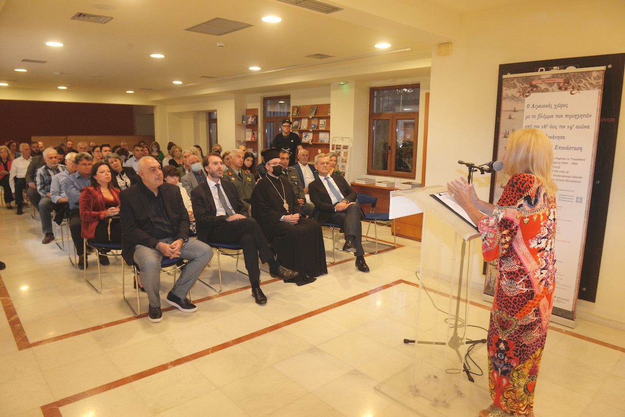 Πλήθος κόσμου παραβρέθηκε στα εγκαίνια της έκθεσης με τίτλο «ο Αιγαιακός χώρος με το βλέμμα των περιηγητών τον 16ο – 19ο αιώνα και τα Δωδεκάνησα στην Ελληνική Επανάσταση» το Σάββατο 22 Οκτωβρίου στο Νεστορίδειο Μέλαθρο.