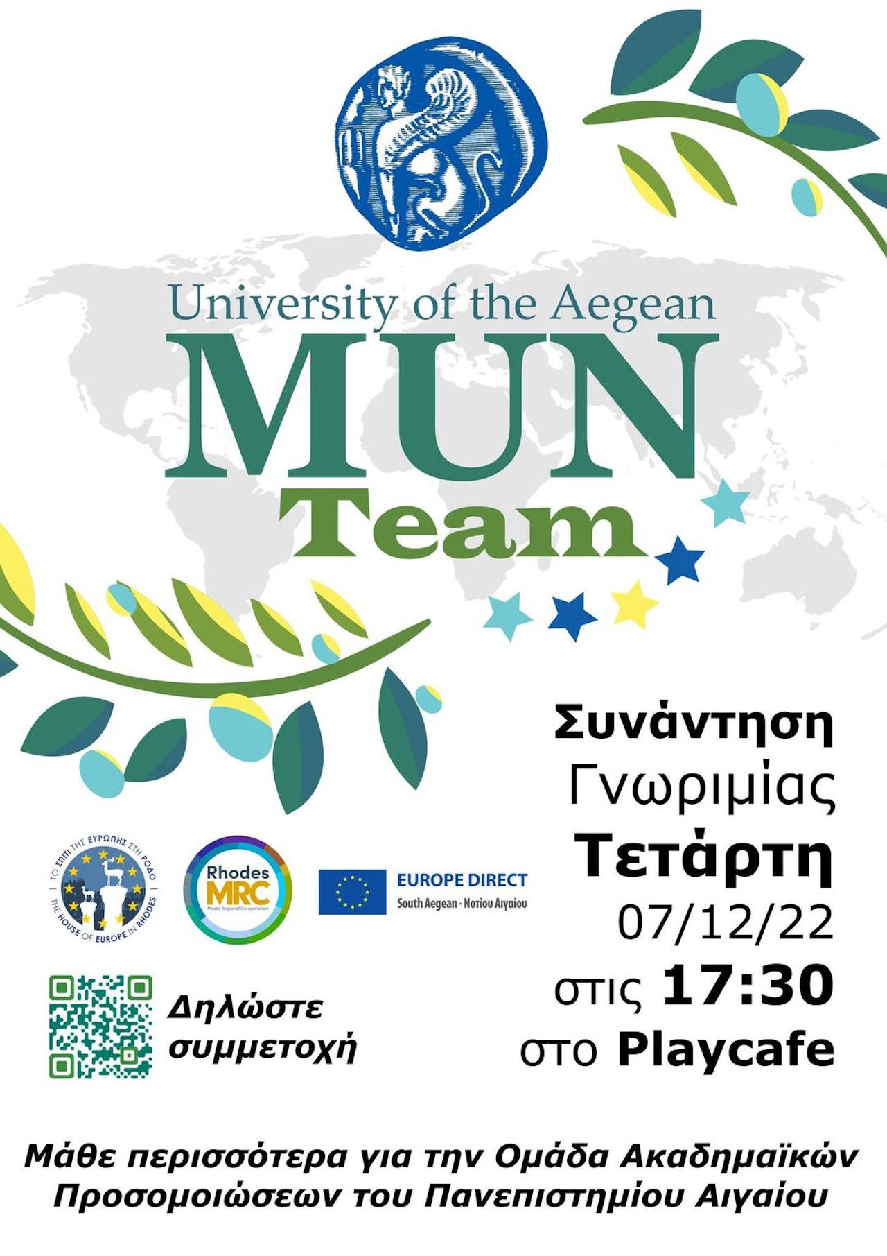 Γνωρίστε τα συνέδρια Ακαδημαϊκής Προσομοίωσης και ελάτε να σχεδιάσουμε μαζί τη νέα εποχή στην Ομάδα MUN του Πανεπιστημίου Αιγαίου.