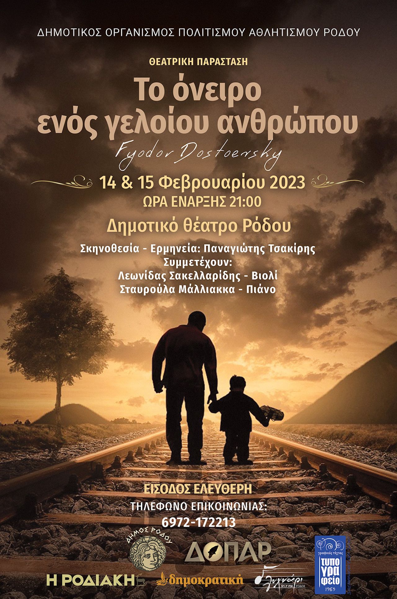Ο Δημοτικός οργανισμός Πολιτισμού Αθλητισμού Ρόδου (ΔΟΠΑΡ) παρουσιάζει το έργο του Φιοντόρ Ντοστογιέφσκι “Το όνειρο ενός γελοίου ανθρώπου” στο Δημοτικό Θέατρο Ρόδου, στις 14 και 15 Φεβρουαρίου 2023. ‘Ωρα Έναρξης: 21:00 και ΕΙΣΟΔΟΣ ΕΛΕΥΘΕΡΗ.