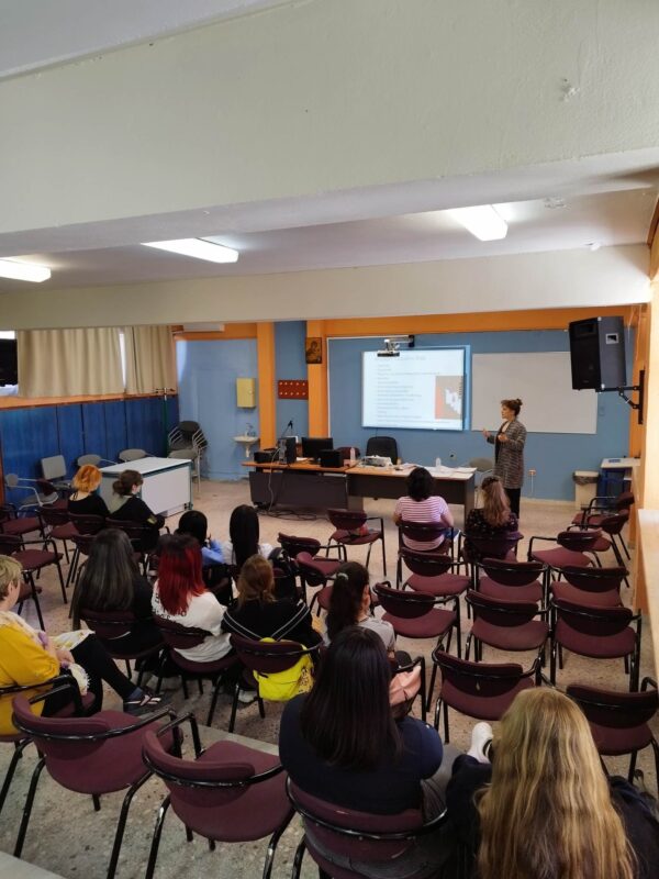 Στις 3 Απριλίου 2023 ακολούθησε η δράση ενημέρωσης και ευαισθητοποίησης των σπουδαστών/τριων του ΔΙΕΚ Νοσηλευτικής Ρόδου, από την Ψυχολόγο και την Κοινωνική Λειτουργό του Συμβουλευτικού Κέντρου Γυναικών, για το φαινόμενο της έμφυλης και ενδοοικογενειακής βίας με τίτλο: “Ενδοοικογενειακή Βία: Πρόληψη και Αντιμετώπιση. Πρώτη Προσέγγιση του θύματος”. Το περιεχόμενο της εν λόγω ομιλίας αφορούσε το φαινόμενο της έμφυλης και ενδοοικογενειακής βίας. Επιπρόσθετα, οι σπουδαστές και σπουδάστριες εκπαιδεύτηκαν στην πρώτη προσέγγιση και αντιμετώπιση των γυναικών θυμάτων βίας. Κατά τη διάρκεια της δράσης προβλήθηκε οπτικοακουστικό υλικό και έλαβαν χώρα διαδραστικές ασκήσεις και διαλογική συζήτηση.