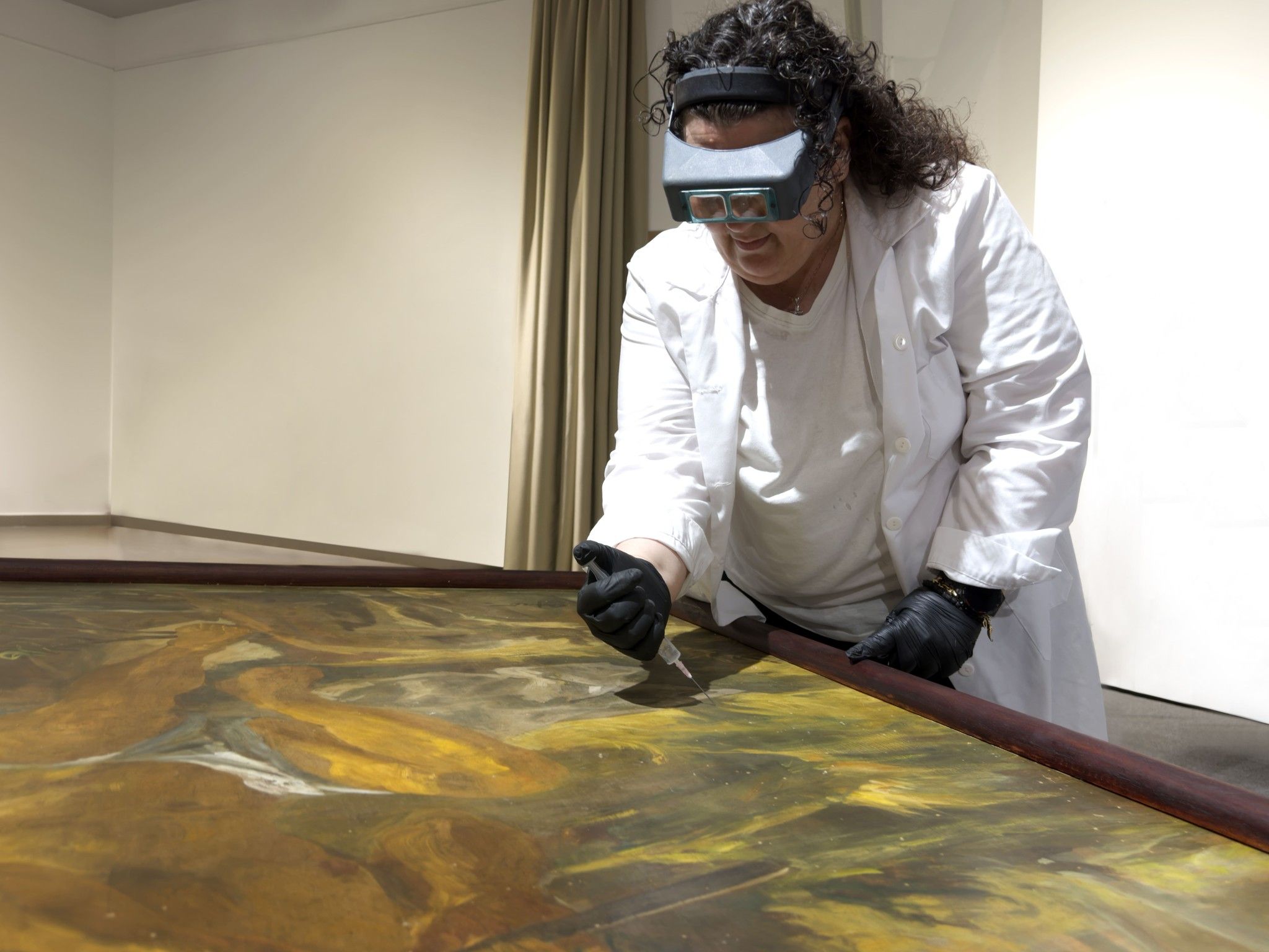 Μεταφέρθηκαν με ασφάλεια στο Μουσείο Νεοελληνικής Τέχνης Ρόδου, όπου η συντηρήτρια του μουσείου Μαρία Μπράτιτση πραγματοποίησε τις παρακάτω εργασίες: στερέωση του ξύλινου φορέα με ενέσεις συνθετικής ρητίνης που λειτουργεί ταυτόχρονα και σαν απεντόμωση και συμπλήρωση απωλειών με ξυλοπολτό, στερέωση της ζωγραφικής επιφάνειας, καθαρισμός στις κύριες όψεις με την αφαίρεση των βερνικιών με το κατάλληλο μείγμα διαλυτών, αλλά και όλων των προηγούμενων επεμβάσεων και την αισθητική αποκατάσταση τους με βάση τη σύγχρονη δεοντολογία, με υδατοχρώματα πλήρως αντιστρεπτά και τεχνική (ριγκατίνο) που την καθιστά ευδιάκριτη και ταυτόχρονα ενοποιεί το χρωματικό σύνολο. Τέλος πραγματοποιήθηκε επίχριση λεπτού στρώματος νέου διάφανου βερνικιού συνθετικής ρητίνης. Όλα τα υλικά που χρησιμοποιήθηκαν είναι πλήρως αντιστρεπτά και σύμφωνα με τους κανόνες συντήρησης.