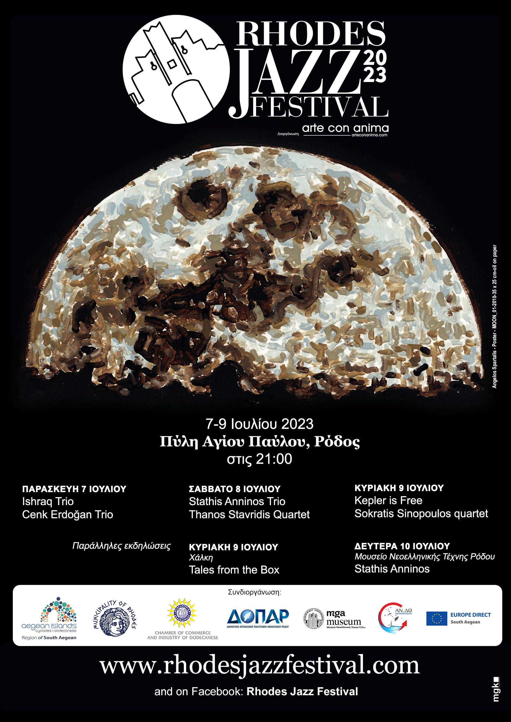 Το Rhodes Jazz Festival διοργανώνει η arteconanima μαζί με την Περιφέρεια Νοτίου Αιγαίου, τον Δήμο Ρόδου, το Επιμελητήριο Δωδεκανήσου, τον ΔΟΠΑΡ, το Μουσείο Νεοελληνικής Τέχνης Δήμου Ρόδου, την ΑΝΔΩ και το Europe Direct Νοτίου Αιγαίου.