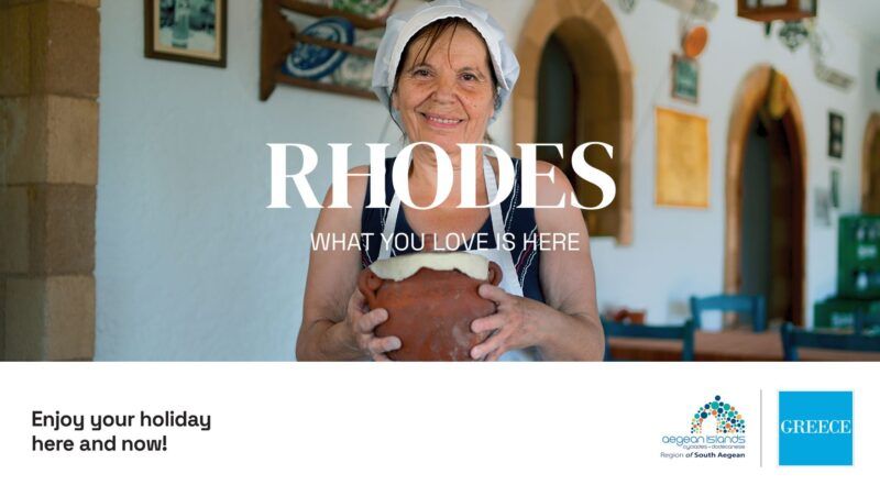 Με το καθαρό μήνυμα “Rhodes. What you love is here” (Ρόδος: Ό,τι αγαπάς είναι εδώ), η καμπάνια με εικόνες και βίντεο από τον κορυφαίο τουριστικό προορισμό διοχετεύεται στα μεγαλύτερα δίκτυα μέσω όλων των καναλιών διανομής, προβάλλοντας όλα τα συγκριτικά πλεονεκτήματα του νησιού.