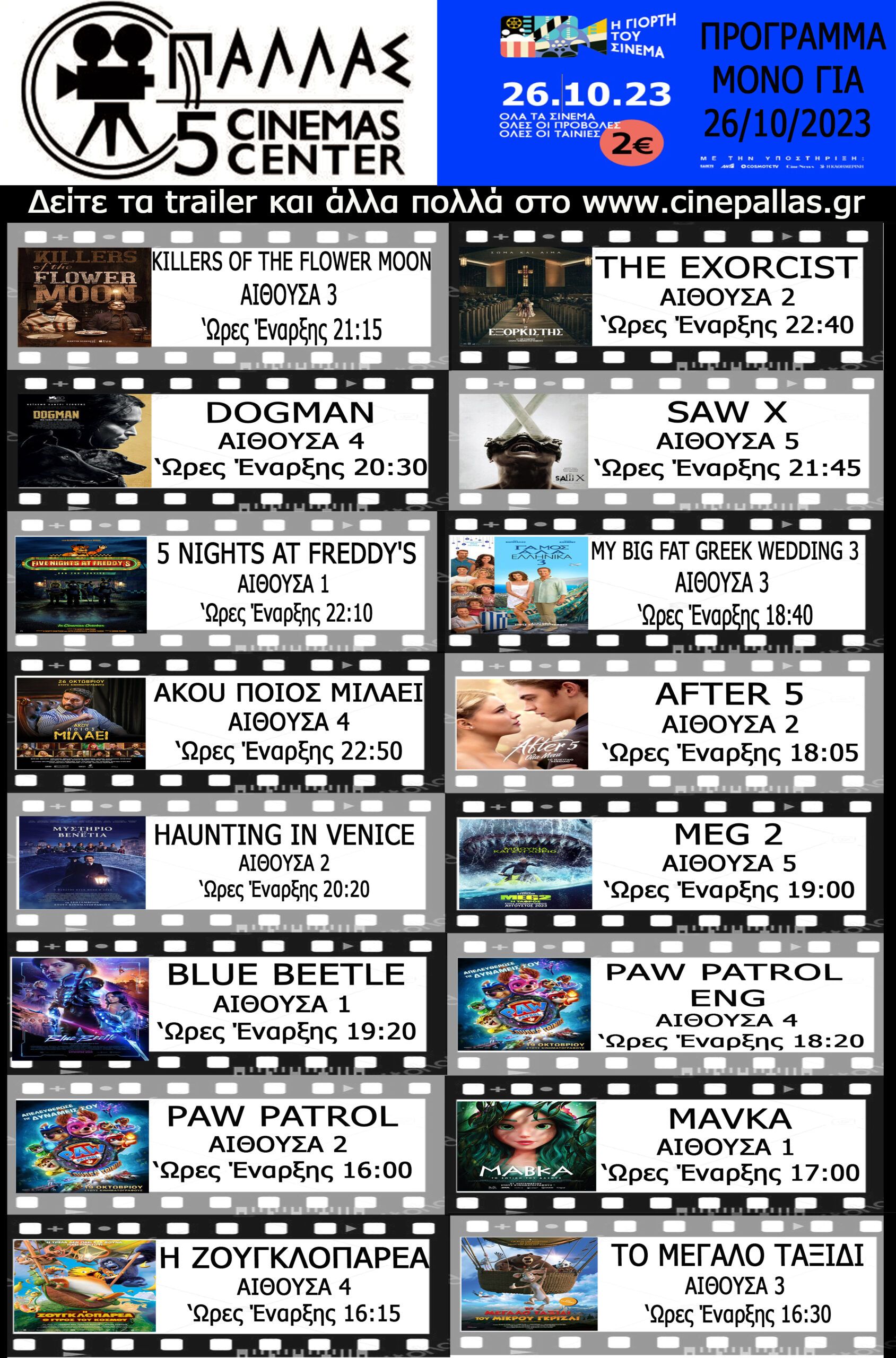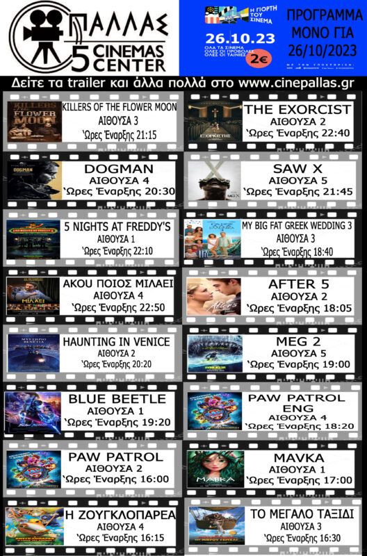 Η ΓΙΟΡΤΗ ΤΟΥ ΣΙΝΕΜΑ έρχεται στο ΠΑΛΛΑΣ 5 Cinemas center, την Πέμπτη 26 Οκτωβρίου, ΜΟΝΟ ΜΕ 2 ΕΥΡΩ ανά ταινία!