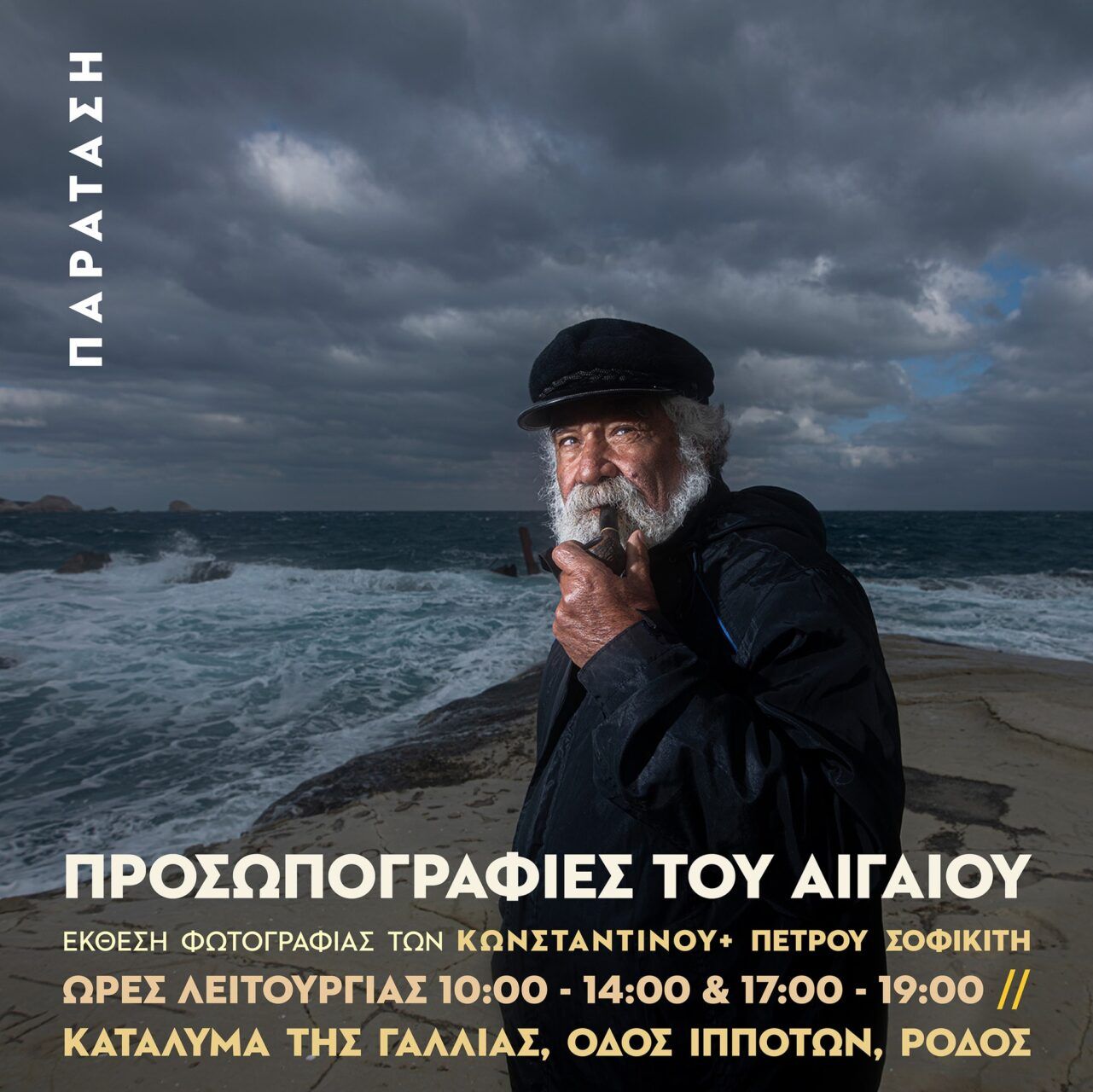 ΠΑΡΑΤΑΣΗ ΕΚΘΕΣΗΣ Λόγω της ιδιαίτερα υψηλής επισκεψιμότητας της έκθεσης φωτογραφίας «Προσωπογραφίες του Αιγαίου» και του μεγάλου αριθμού σχολείων της Ρόδου που επιθυμούν να την επισκεφθούν, αποφασίσθηκε η παράτασή της μέχρι και τις 10/11/2023. Ώρες λειτουργίας καθημερινά: 10:00-14:00 και 17:00 -19:00 Συνδιοργάνωση :Περιφέρεια Νοτίου Αιγαίου Κατάλυμα της Γαλλίας