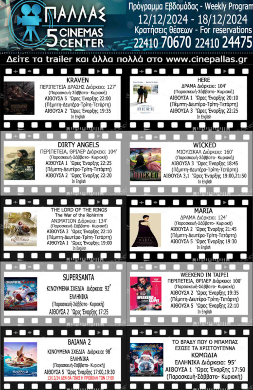 Πρόγραμμα Εβδομάδος 12/12/24-18/12/24