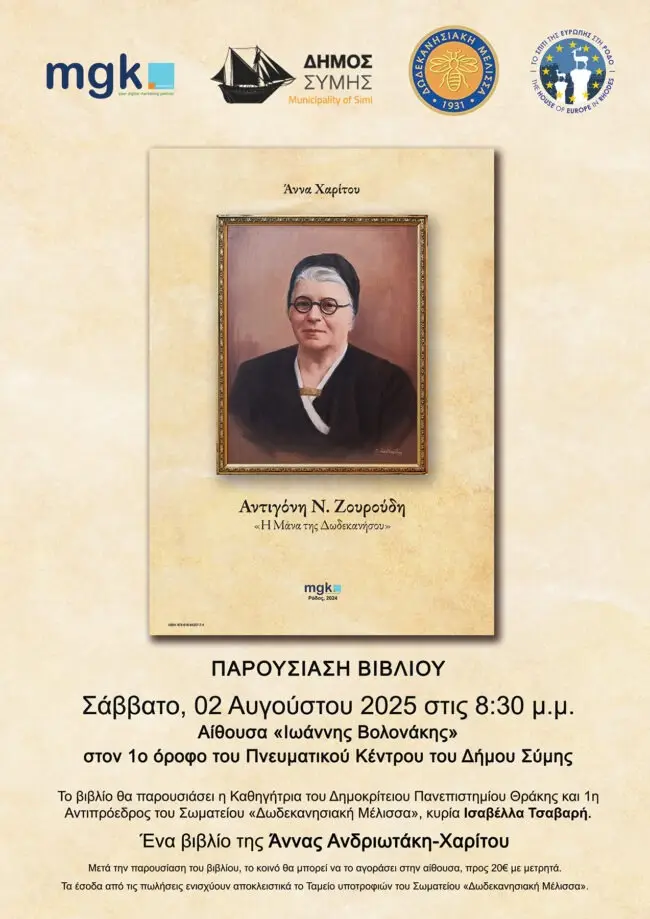 Παρουσίαση βιβλίου «Αντιγόνη Ν. Ζουρούδη – Η Μάνα της Δωδεκανήσου» της Άννας Χαρίτου στη Σύμη