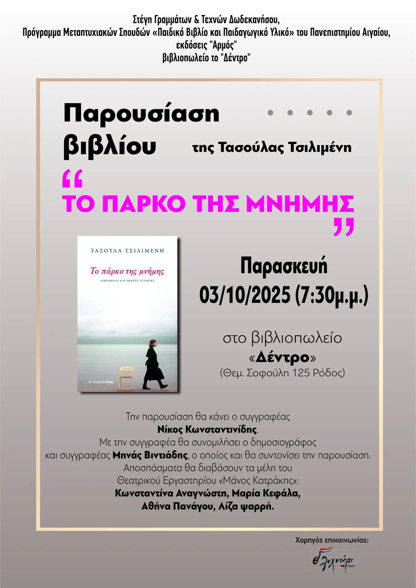 Παρουσίαση βιβλίου: Το πάρκο της μνήμης