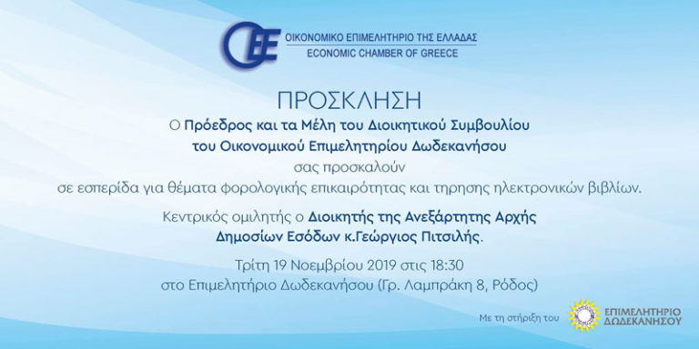 Εσπερίδα με τον Διοικητή της Ανεξάρτητης Αρχής Δημοσίων Εσόδων κ. Πιτσιλή