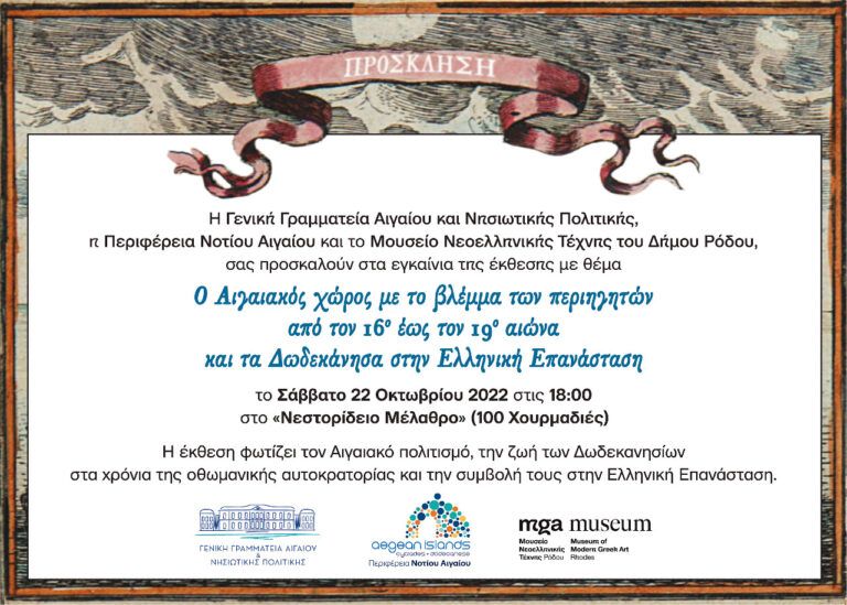 Έκθεση “Ο Αιγαιακός χώρος με το βλέμμα των περιηγητών από τον 16ο έως τον 19ο αιώνα και τα Δωδεκάνησα στην Ελληνική Επανάσταση”