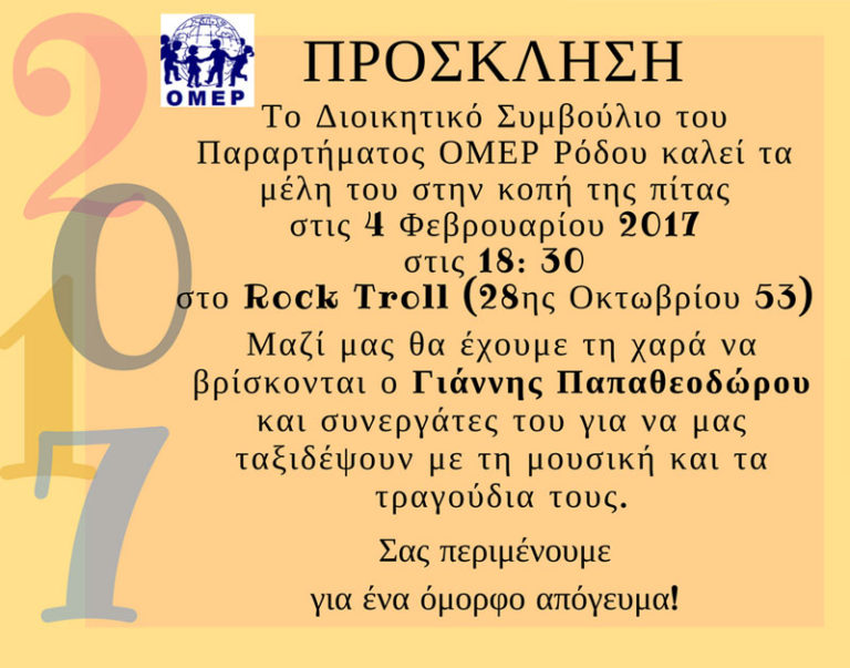 Το Παράρτημα ΟΜΕΡ Ρόδου κόβει την πίτα του
