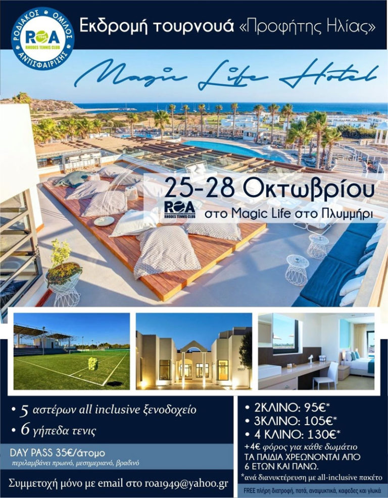 Ετήσιο γεγονός μεγάλης ανταπόκρισης από τα μέλη του έχει γίνει τα τελευταία χρόνια το τουρνουά – εκδρομή του Ροδιακού Ομίλου Αντισφαίρισης με το ιστορικό όνομα «Προφήτης Ηλίας».