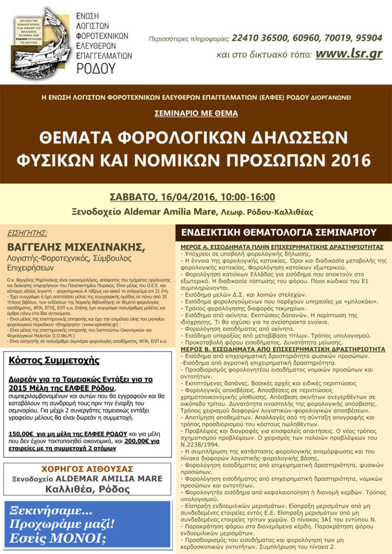 Νέο σεμινάριο από την ΕΛΦΕΕ Ρόδου για τις φορολογικές δηλώσεις